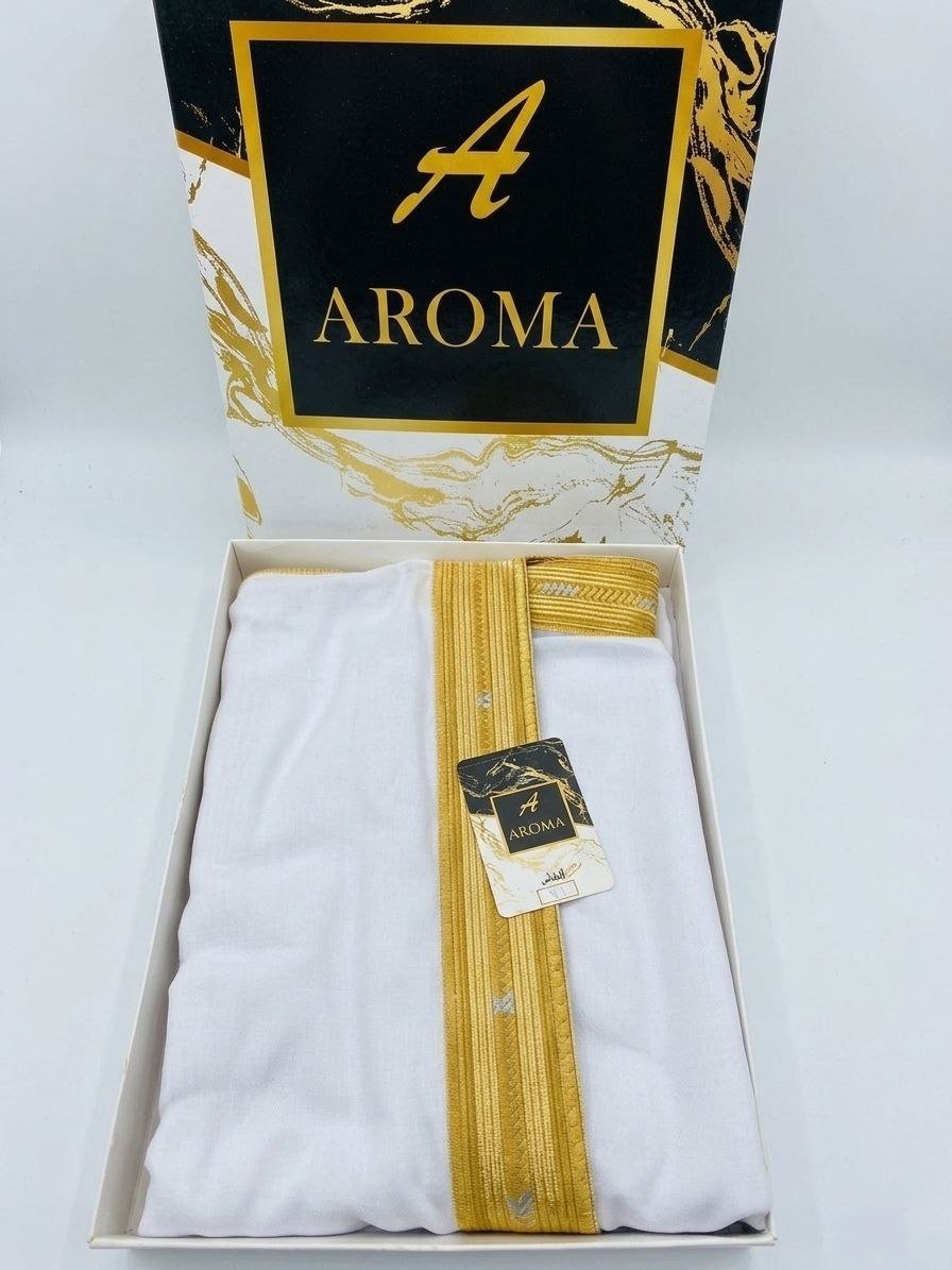 بشت رجالي فاخر بخامة ناعمة وتطريز ذهبي أنيق
